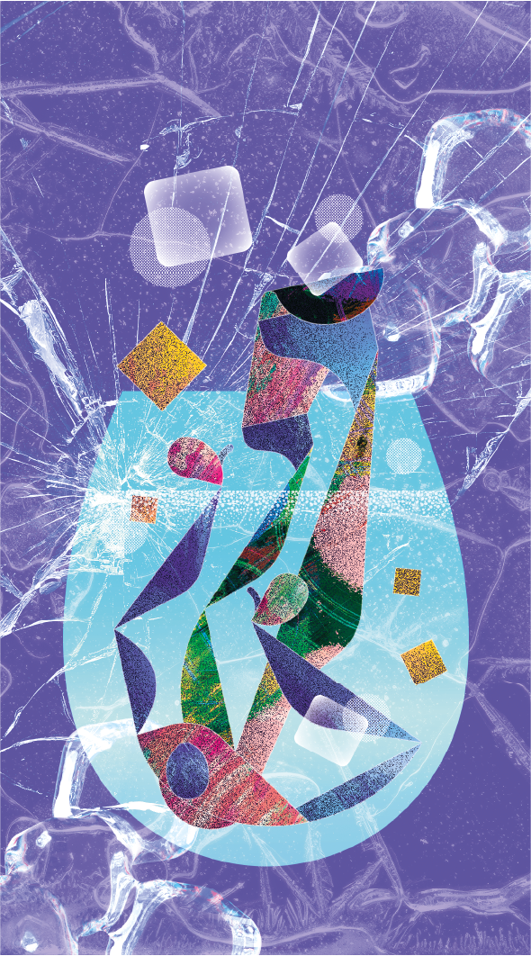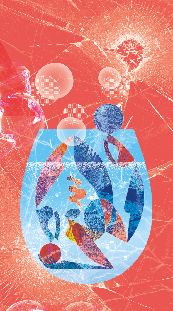 L’illustrazione cattura proprio questo istante: quando il cocktail smette di essere solo una bevuta e diventa esperienza. Un gioco di forme e superfici che si espande oltre il bicchiere, coinvolgendo lo sguardo, e tutti gli altri sensi.